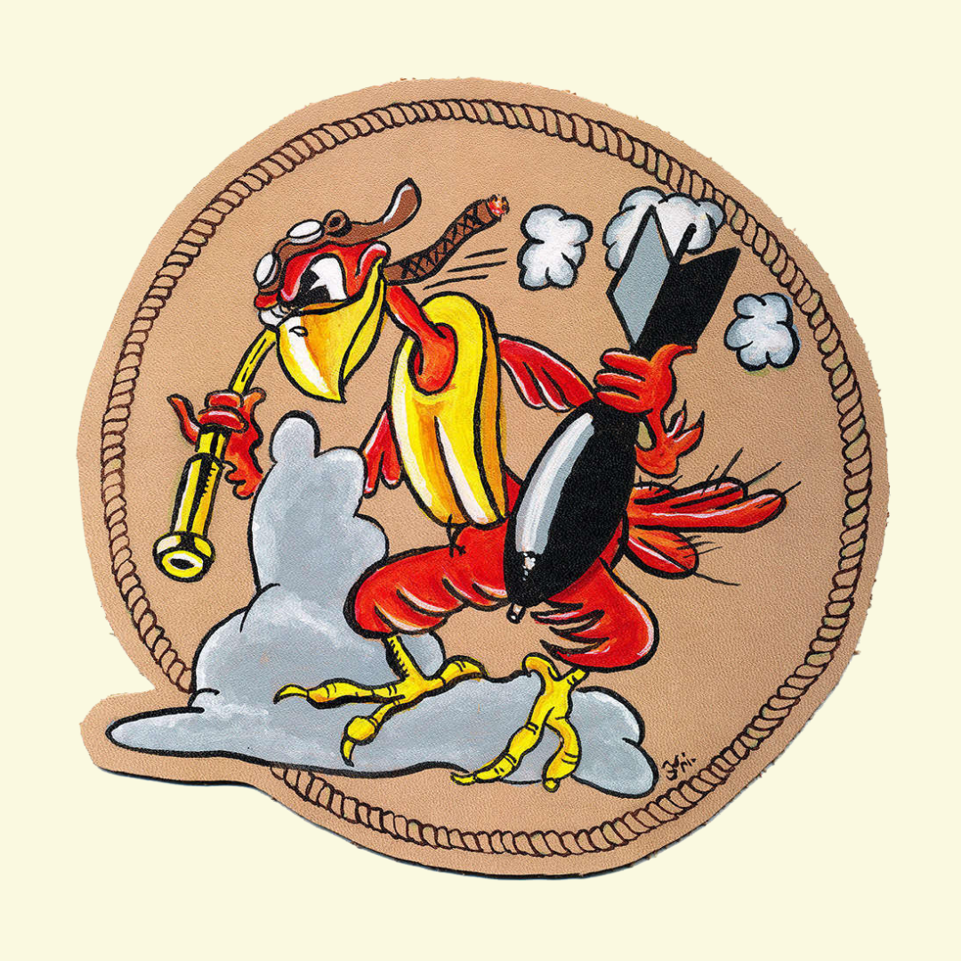 L’insegna dello squadrone da bombardamento VB-16 disegnato sul dorso della nostra t-shirt rappresenta una unità della Lexington che è stata fondamentale nello scontro contro l’impero giapponese durante la campagna del pacifico centrale dal Settembre 1943 fino al Giugno 1944. Lo scontro nel Mare delle Filippine avvenuto nel Giugno del 1944 divenuto famoso poi con il soprannome di “Tiro al tacchino delle Marianne” vide gli squadroni imbarcati di questa nave protagonisti assoluti in quei cieli di fuoco.
